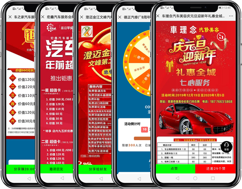 通过这些活动,朋友帮你推广了客户,你给朋友现金返现,这些都会提高活动的效果。而系统的每一种活动功能,都能在这方面给你一个突破。